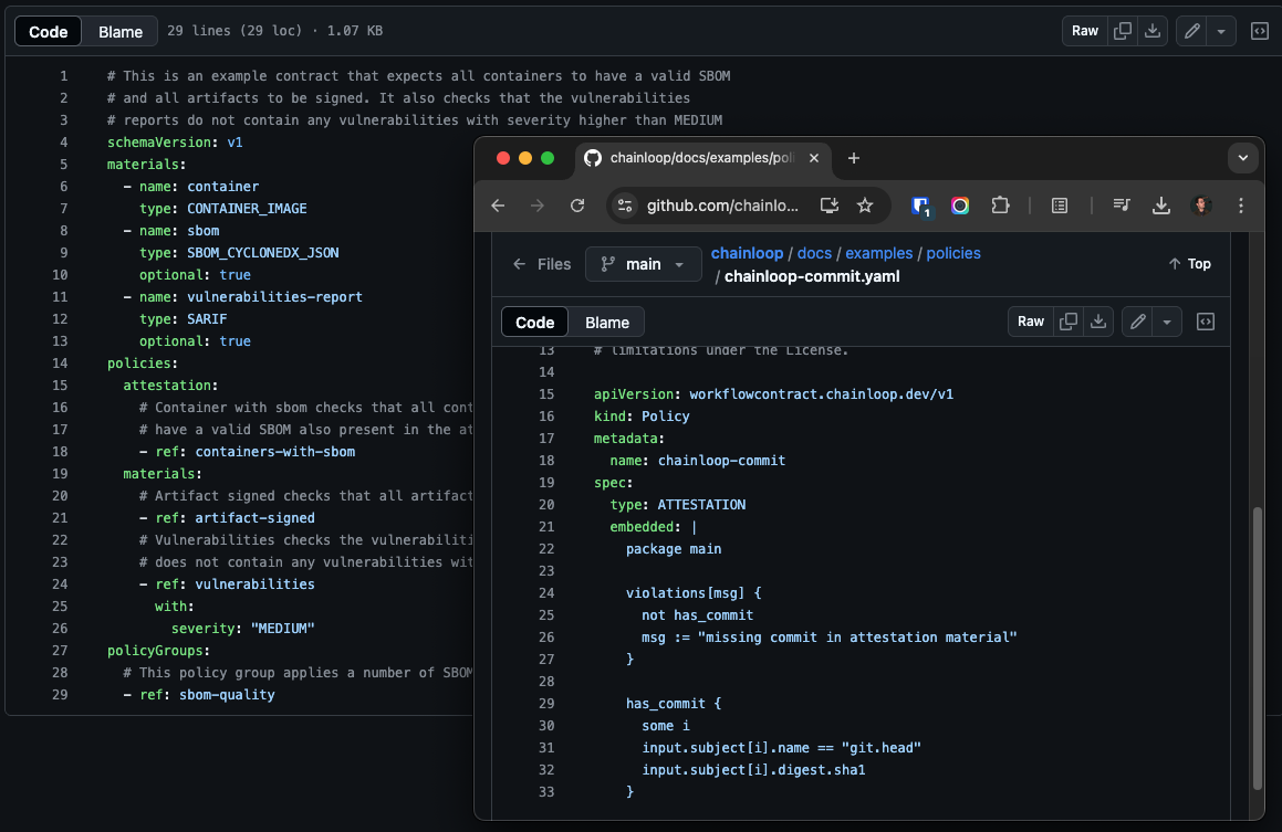 These properties make platform teams love Chainloop; they can focus on instrumenting, collecting, and writing policies, all of which are declaratively implemented as code.